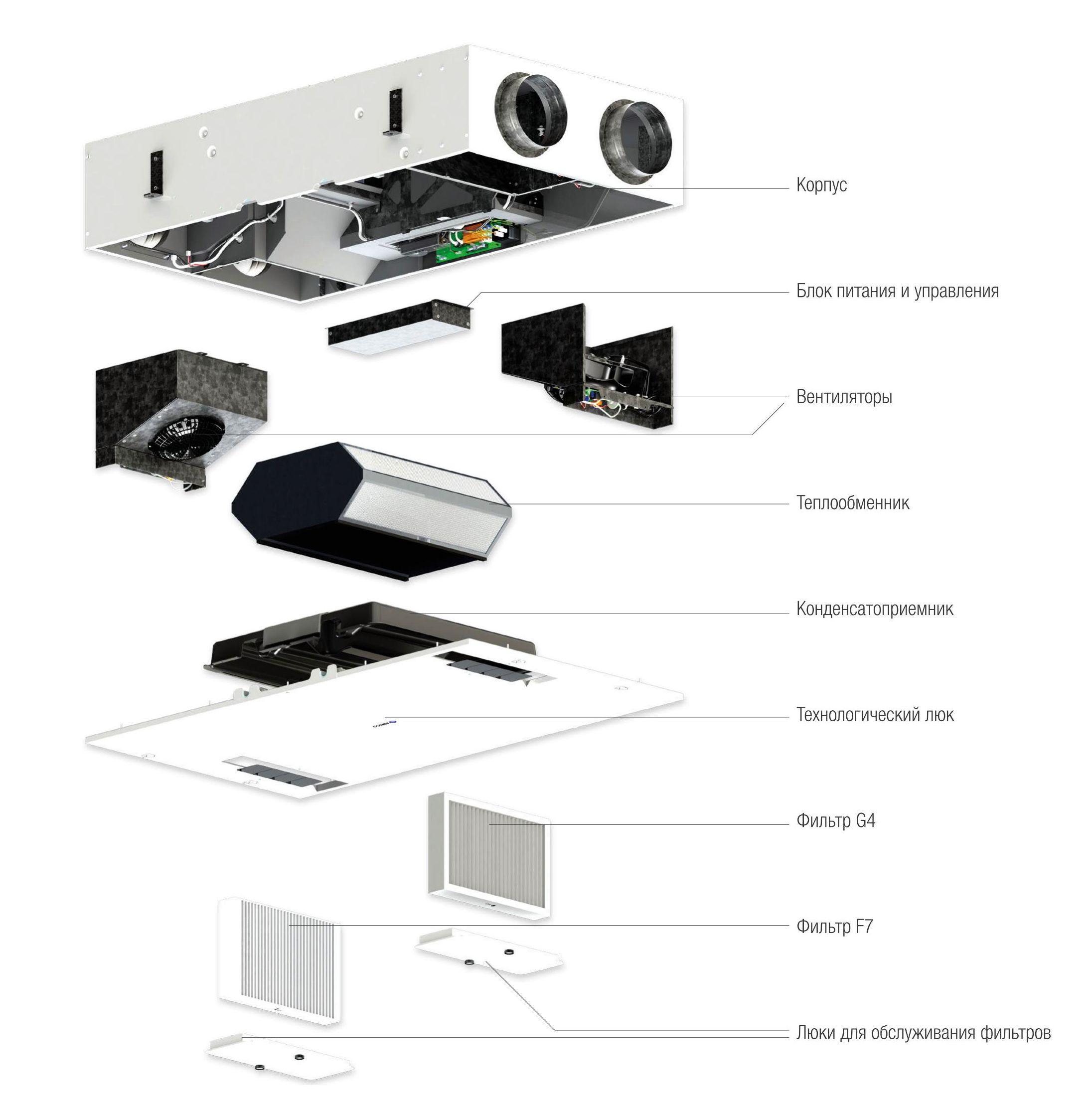 Категория фильтра для приточного воздуха: 1 x F7 / для удаляемого воздуха: 1 x G4