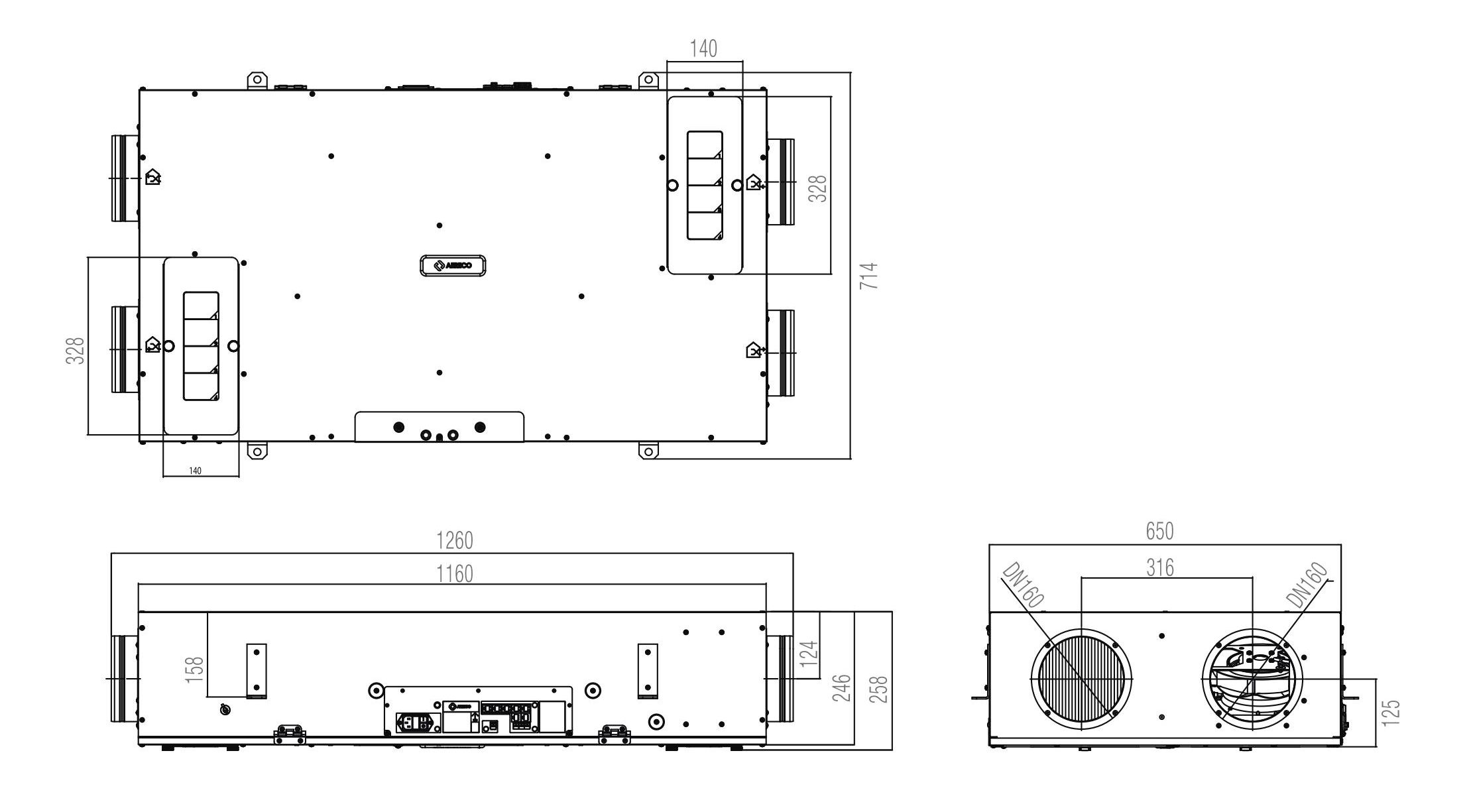 Инновационная система вентиляции с рекуперацией тепла DXR обеспечивает комфортные условия за счет умеренной температуры приточного воздуха, предварительно подогреваемого в теплообменнике центрального блока. Система позволяет обеспечивать баланс потоков приточного и вытяжного воздуха в зависимости от индивидуальных потребностей каждого отдельного помещения. Автоматическое регулирование потоков воздуха также позволяет существенно повысить энергоэффективность: КПД теплообменника системы DXR составляет 82 %, а расход потребляемой энергии снижается до 50 %. Компактные размеры блока DXR (высота всего 26 см) обеспечивают простоту установки в потолочном пространстве (например, в коридоре за подвесным потолком).Устройство с высочайшим уровнем энергоэффективности.Благодаря тому, что корпус, распределительный блок и все основные детали изготовлены из металла, DXR характеризуется высочайшим уровнем качества и долговечности. Большинство деталей (двигатель, вентиляторы, теплообменник) изготавливаются на заводе Aereco в Германии, сборка осуществляется во Франции.