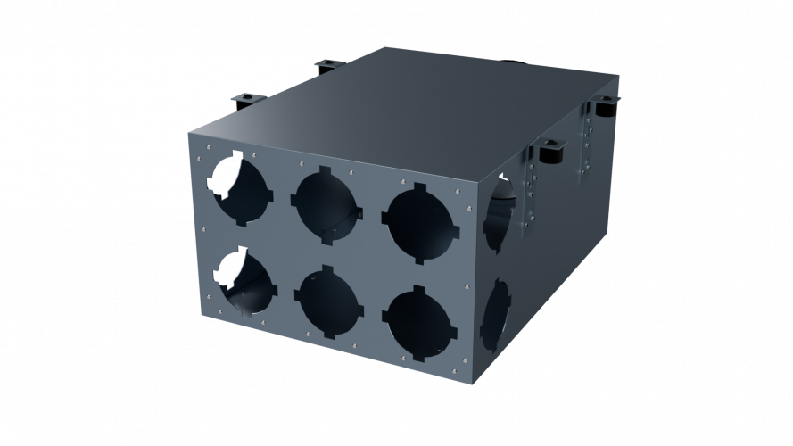 Коллектор воздухораспределительный CMP-FLD 160/90×6 предназначен для распределения воздушного потока в системе вентиляции на основе гибких воздуховодов Flexag диаметром 90 мм. Подающий вентиляционный канал диаметром 160 мм с уплотнительной резинкой разделяется на 6 каналов по 90 мм.Выходы коллектора: 6 х 90 ммДиаметр подключения: 160 ммРазмеры: 500 х 200 х 600 ммКонструкцияКоллектор изготовлен из оцинкованной стали. Благодаря своей конструкции, коллектор Flexag CMP-FLD 160/90×6 выполняет роль камеры статического давления, снижая скорость воздушного потока и шум. Изнутри все коллекторы Flexag оклеены нейтральным звукопоглощающим материалом, что делает вентиляционную систему еще тише.МонтажКоллектор устанавливается на четыре монтажных кронштейна (в комплекте).