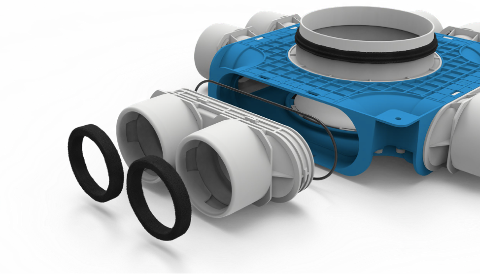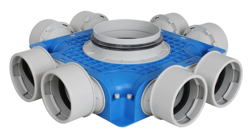 Высота коллектора всего лишь 80 мм (высота патрубка крепления воздуховода — 89 мм). По высоте патрубка он на 22 % тоньше самого тонкого аналога. А это значит, что коллектор можно разместить в подпотолочном пространстве или в стяжке, и он будет занимать не больше места, чем сам воздуховод. Это делает систему Blizzard R4 незаменимой для тех объектов, где компактность имеет ключевое значение.