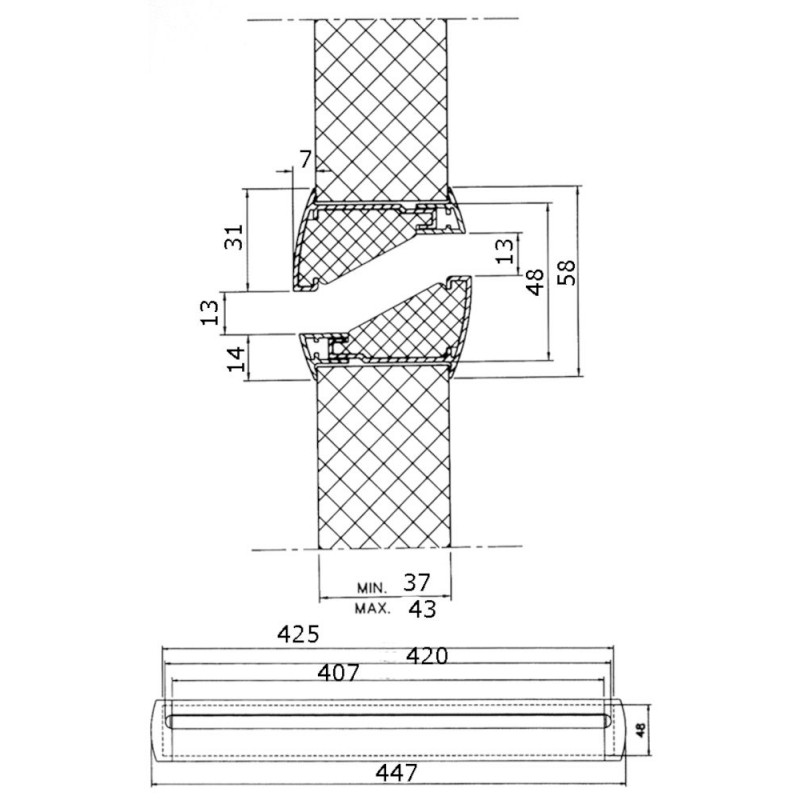 Высококачественная звукопоглощающая дверная переточная решетка из алюминия Silendo для организации вентиляции в жилых помещениях, Бельгия (RENSON)Простая установка защелкиванием.  Цвет — RAL 9005Материал• Акустический демпфирующий материал: абсорбирующая пластиковая пена • Торцевые стенки: полимер ASA Luran S (цветная, погодоустойчивая и устойчивая к ультрафиолетовому излучению) • Торцевая стенка цвет: Inox, белый, коричневый Размеры• Длина: 425 мм • Высота: 48 мм • Толщина двери: от 37 до 43 мм Крепление• Система кликовТехнические данные Silendo (425 x 48 мм) Скорость потока (EN 13141-1) Q при 1 Па 17,7 м³/ч Q при 2 Па 25,1 м³/ч Q при 10 Па 56,1 м³/ч Q при 20 Па 79,4 м³/ч Комфорт (EN ISO 140-10, EN ISO 717-1) Звукоизоляция Dn, e, w (C; Ctr) 32 (0;-2) дБ