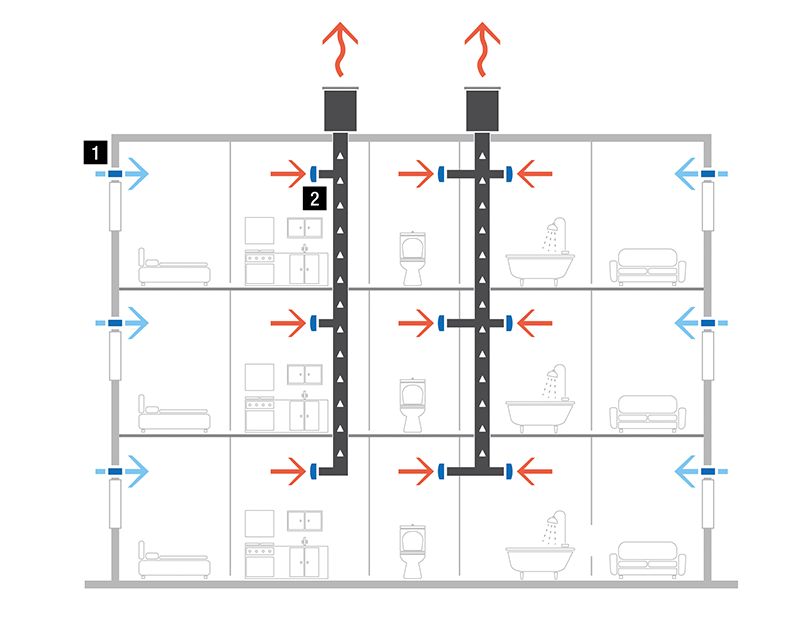 Для обеспечения полноценного воздухообмена, в индивидуальной, жилищной и общественной застройке и в капитальном строительстве в целом, часто используются естественная вентиляция т.е. движущие силы, основанные на естественных физических принципах – тепловая тяга и ветер. Тепло стремящееся вверх по каналу понижает давление, что приводит к перемещению воздуха помещения в сторону разряжения т.е. в сторону этого канала.